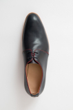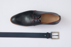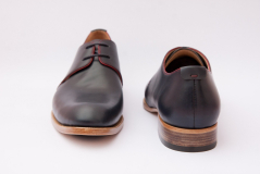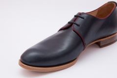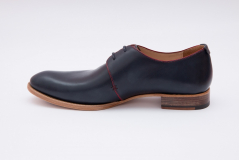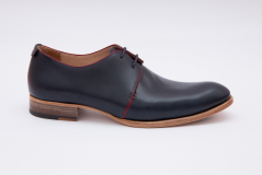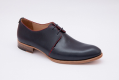 Pánské polobotky s dvoudírkovým šněrováním. Odlišné od běžného střihu derb jsou právě počtem dírek na šněrovadla. Model je navržen s barevnou lemovkou, která zdobí zadní díly. Obuv svou jednoduchostí dokáže učarovat stále a pro mnohé pány je vstupní branou do světa zakázkové obuvi. Špici lze dozdobit perforací, opasek na míru prošít v barvě podšívky.